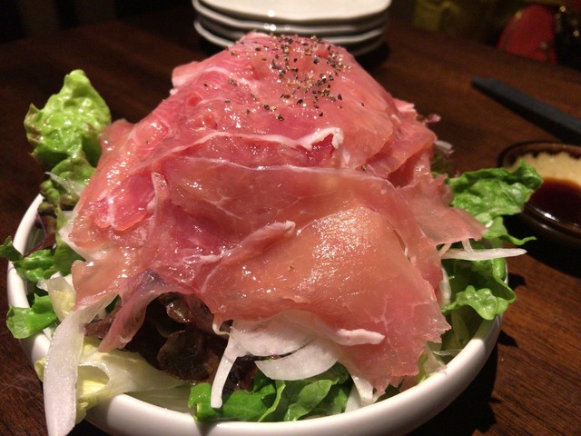 生ハムの塩気とドレッシングのあっさり酸味のサラダです。