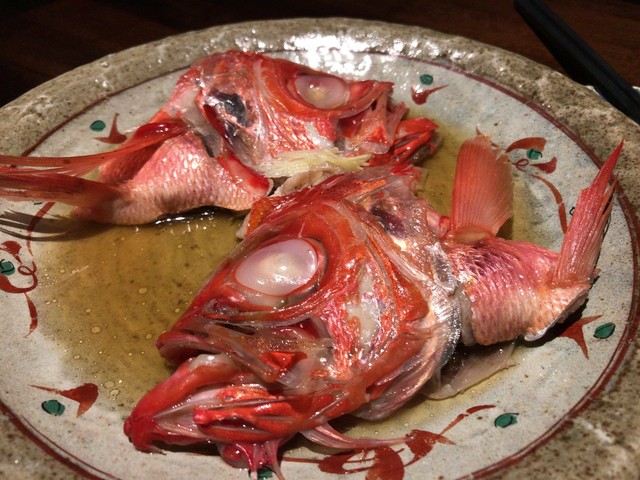 サラダや天ぷらも頂きつつ、お刺身が美味しかったから金目のかぶと煮も注文。