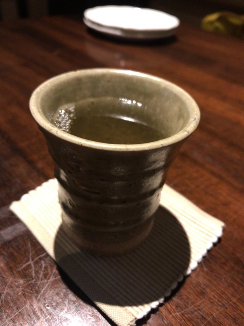 まずは日本酒を注文。1杯目は仙禽。日本酒は100mlでの提供です。