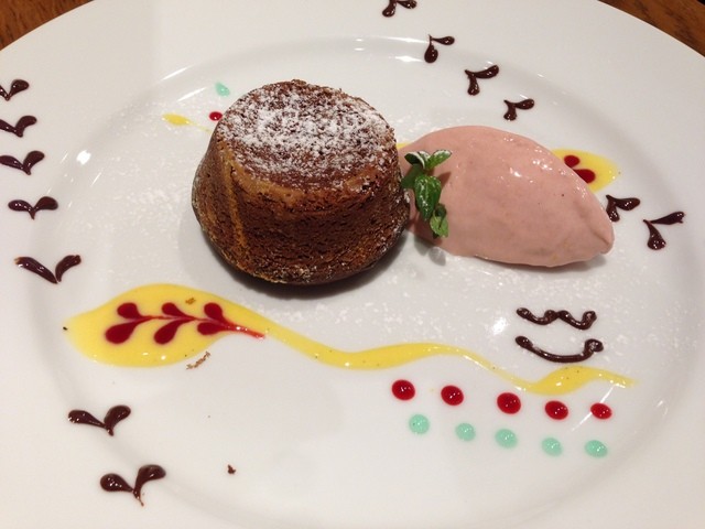 本体も綺麗ですけど、チョコやソースでお皿を綺麗にデコレーションしてあって見た目にもGOODです。