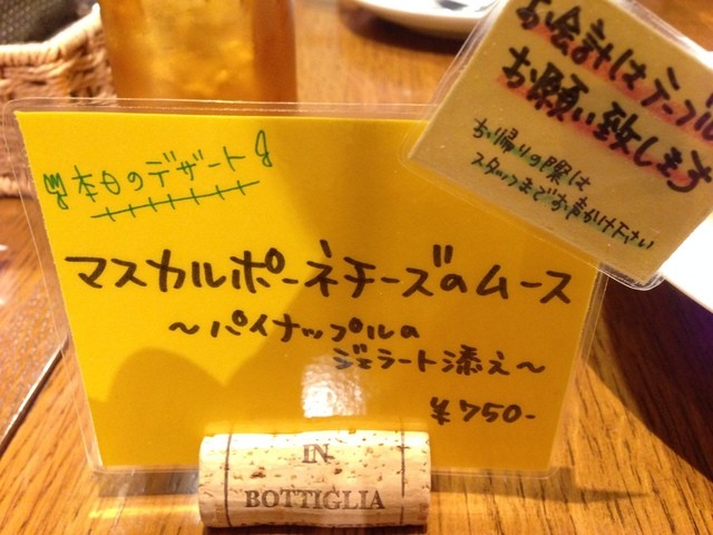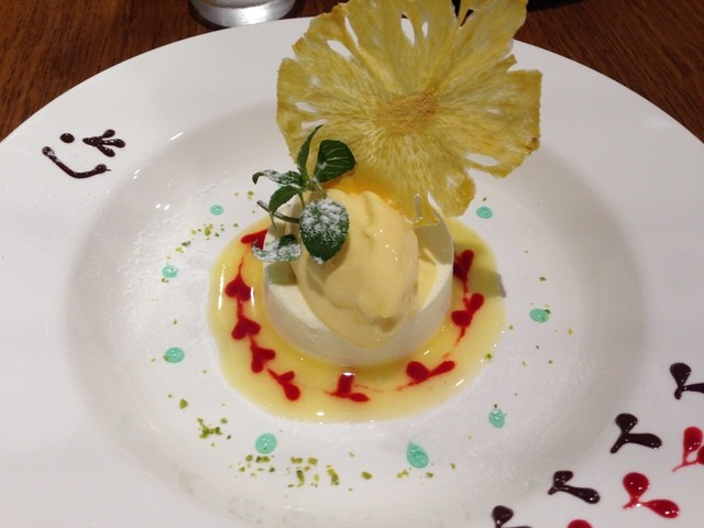 本日のデザート マスカルポーネチーズのムース~パイナップルのジェラート添え~