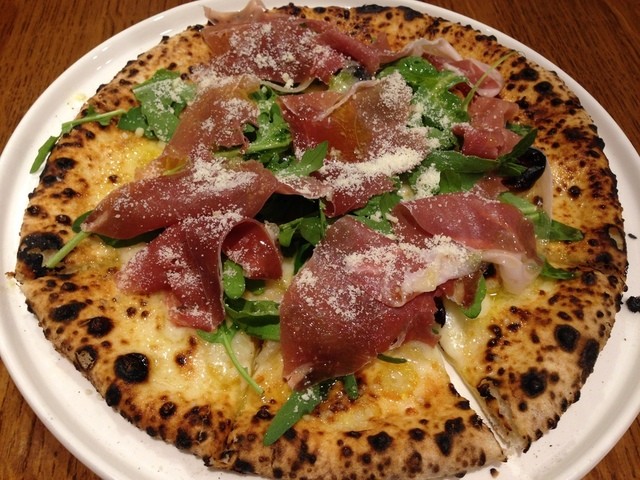 ここに風味の強い生ハムとルッコラが乗せられています。