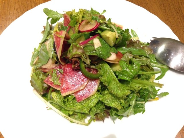 葉物がメイン、きゅうりやナスや赤蕪なども入っていて見た目も食感も楽しめます。