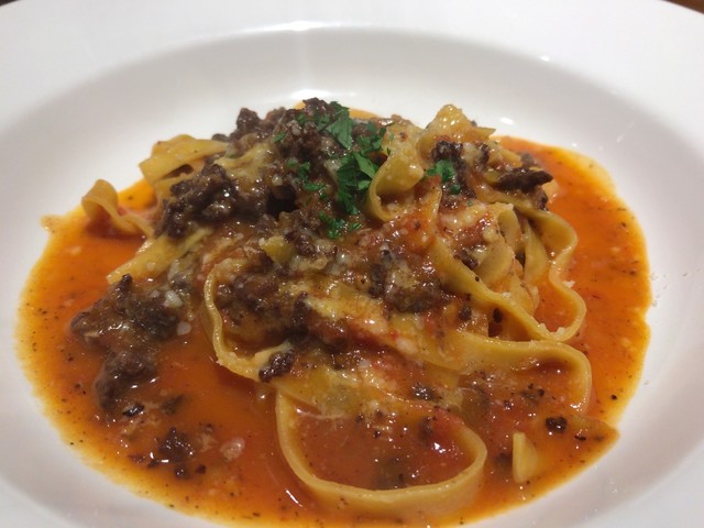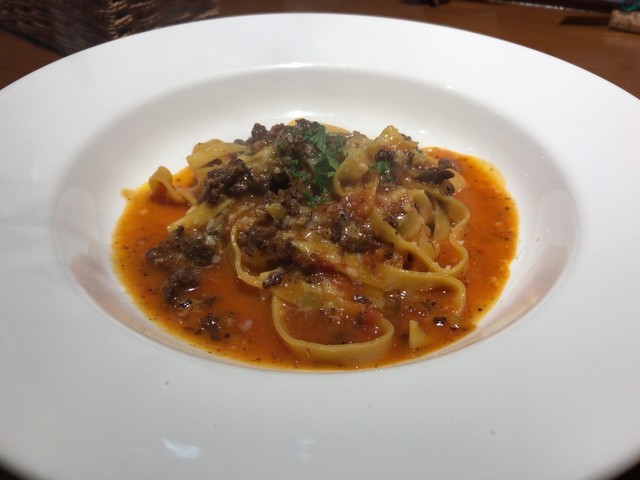 パスタは短角和牛のミートソース。歯切れ感の良いフィットチーネとコッテリソースが良く合います。