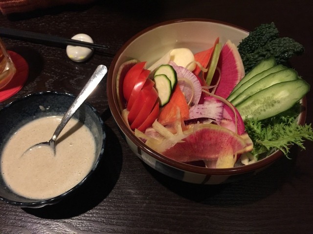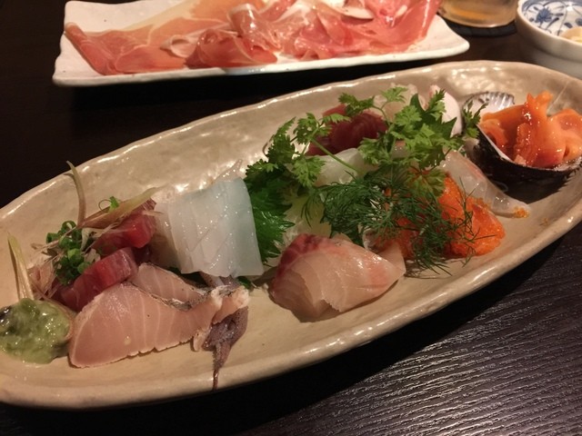 お酒とサラダと刺身盛り合わせを最初に注文、料理のバリエーションが豊富なのでメニューを見て色々と悩みます^^