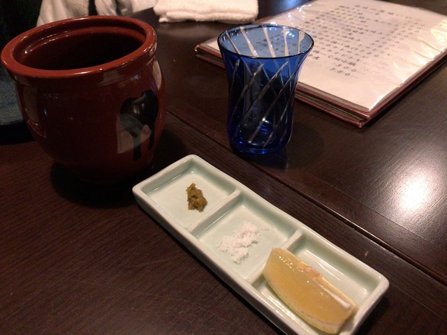 それ以外にも辛味と香りの良い柚子胡椒や塩とレモンもありますよ~。