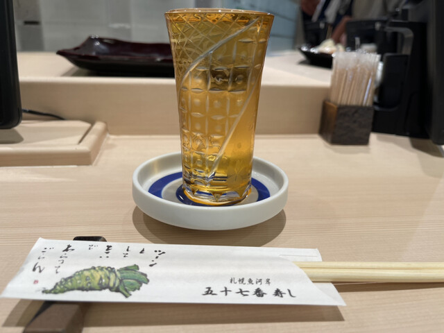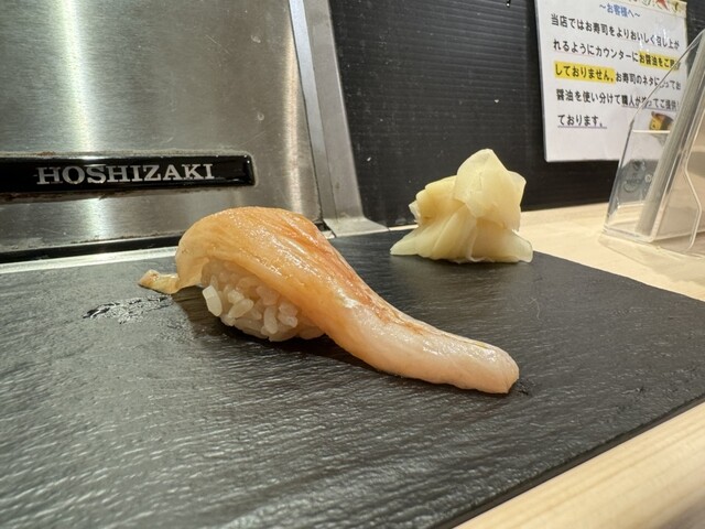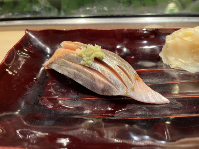 新千歳空港のお土産エリアにある立食い寿司。北海道の魚介を中心に、手仕事加えて煮切りで食べる、赤酢のシャリ。飛び立つ最後まで北海道を味わえる立食い寿司です。