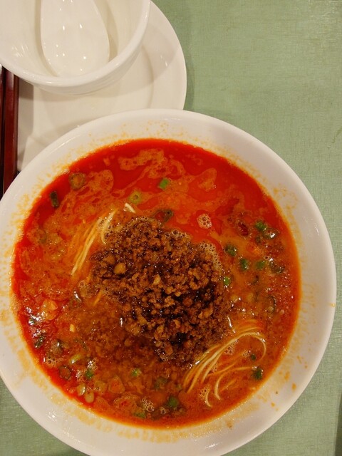 定番は台湾風平打ち麺の担々麺(ちょい辛め)、それとミニ麻婆丼のセット^^