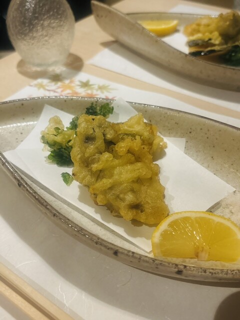 前菜から刺身、地鶏、牡蠣の天ぷら、