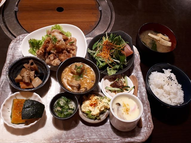 でも、ここのランチだと、ワンプレートにさまざまなメニューのお惣菜が出てきて、ごはんに汁物、ミニデザートまでついて850円ですから、CP的にも、ボリュームとしても充分ですし、主婦の視点では”なにげないおかずにひと工夫で、こんな一品になるんだな”と思わせていただけるお惣菜に学ぶことも多いです。