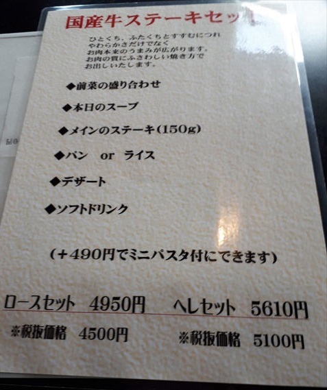ここの国産牛ステーキは、私たちの友人がやわらかさとソースの美味しさとボリュームに魅了されて、大阪からやって来てくれるほどのファンなのですが、義母もまた、「やわらかくて美味しいステーキだし、ソースも美味しい。」と喜んでおられました。