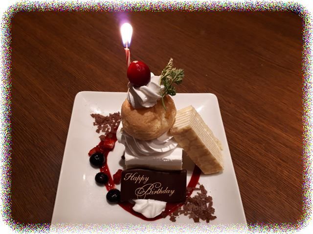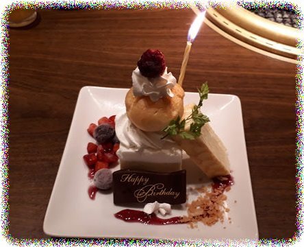 特に、今回「お誕生日おめでとうございます。」というお祝いの言葉と共に、キャンドルの灯されたデザートが運ばれてきた時には、最近、いろいろあって、疲れ気味だった私の心まで明るく照らしていただいたような気がしました。