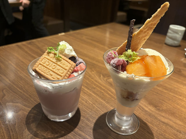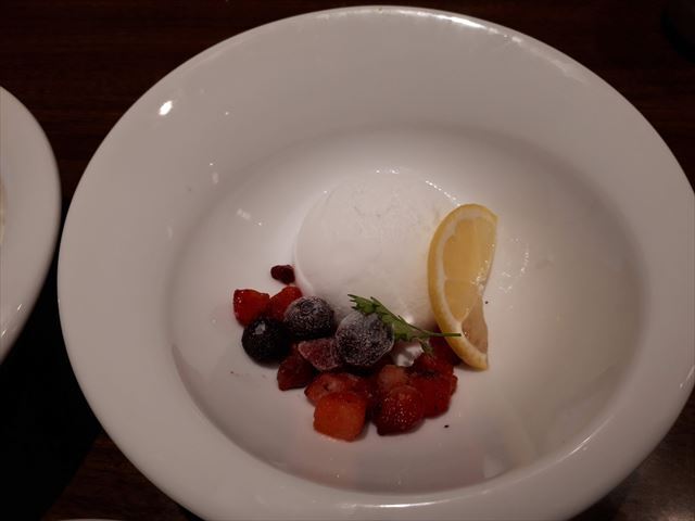 ランチ食べ放題コースのデザートは、ひとり1つオーダー可能なため、お腹がいっぱいでもデザートは別腹で、おしゃれな2種類のデザートを主人と半分ずつ分け合っていただきました。