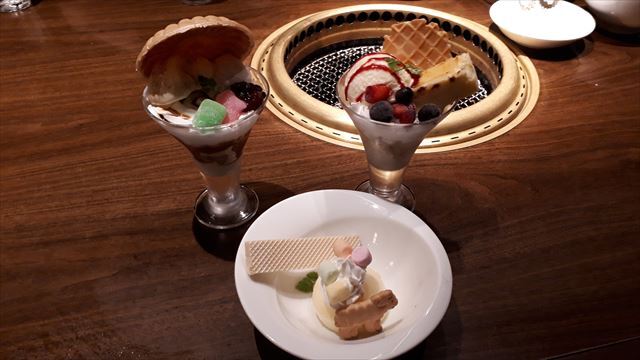 自宅で焼肉をするよりも、手軽にいろいろな種類のお肉やメニューが楽しめて、ひとり1つずつですが食後のデザートまで選べます。