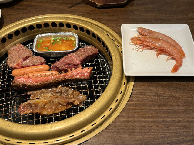 焼肉:ワンカルビ、厚切り上ロースステーキ、ハラミステーキ~トリュフ香る贅沢ソースで~、上ロース焼きすき(生玉子付き)、上カルビ焼きすき(生玉子付き)、上カルビ、ネギまみれ中落ちカルビ、ホルモン、せせり(塩)、