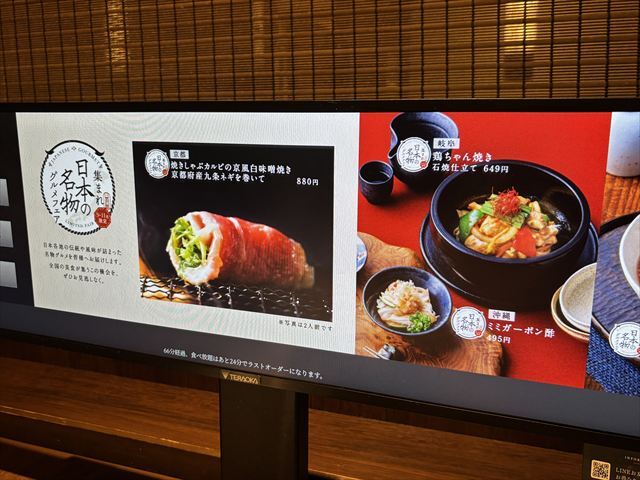 期間限定「日本の美食フェア(2・3月限定)」:青森県陸奥湾ホタテと菊菜のサラダ、高知県産柚子香るせせりの七味焼き、北海道産生ハムとローストポーククリームチーズの盛り合わせ、福島県喜多方風ラーメン、長野県産角切りカルビ醤油麹ダレ、北海道産小豆の白玉もなか(わらび餅入り)