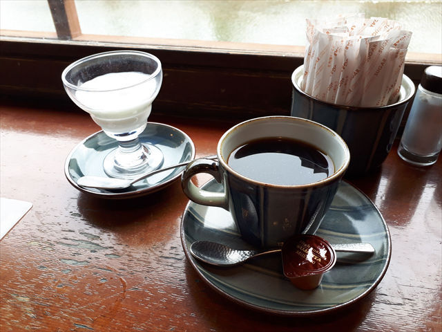 開店と同時に店内に入り、オーダーしたモーニングセットの内容は、コーヒー、トースト、ゆで卵、バター、ミルクジャム、ヨーグルトで、700円(税込)。