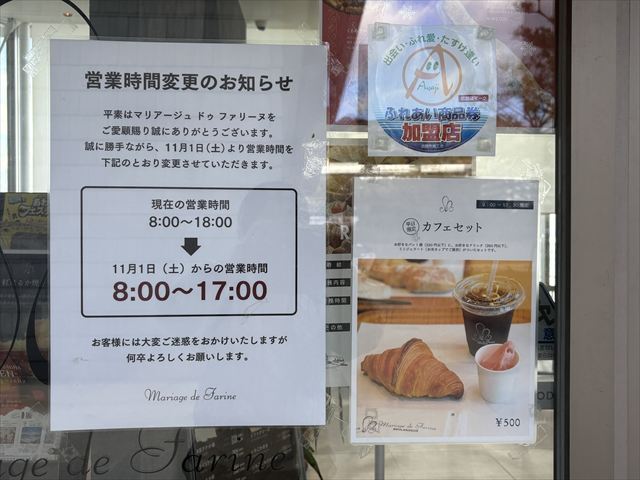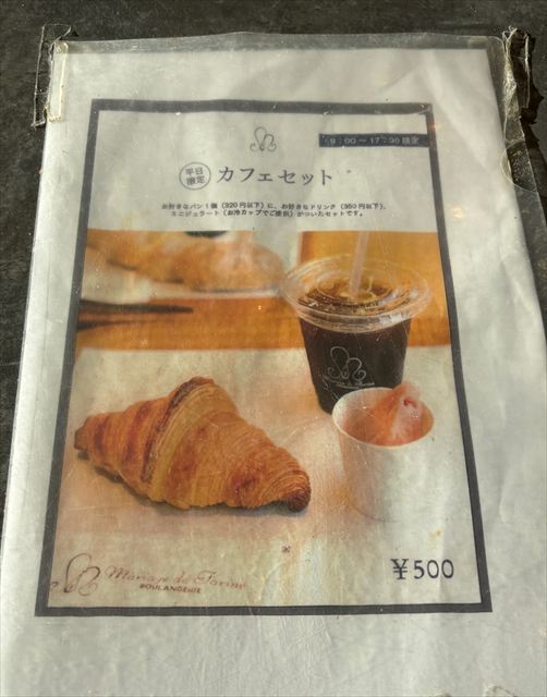 私たちが実家へお迎えに行った際に、持ち込んだおにぎりなどを軽い朝食としてみんなで食べて出ましたが、店内に並んだおいしそうなパンの数々を見てドリンクだけではもったいないとなり、平日限定&時間限定のカフェセット(500円)をオーダーしました。