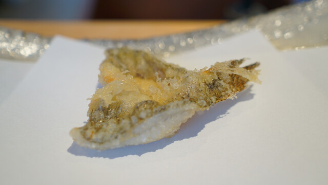 最初のえびから圧倒的。火入れがさらに進化し、決して生でも芯が冷たいわけでもなくちゃんと揚がっているがミディアムレアに仕上がって強い甘みを感じる。正直えびでこれほどの差を感じたのは初めて。