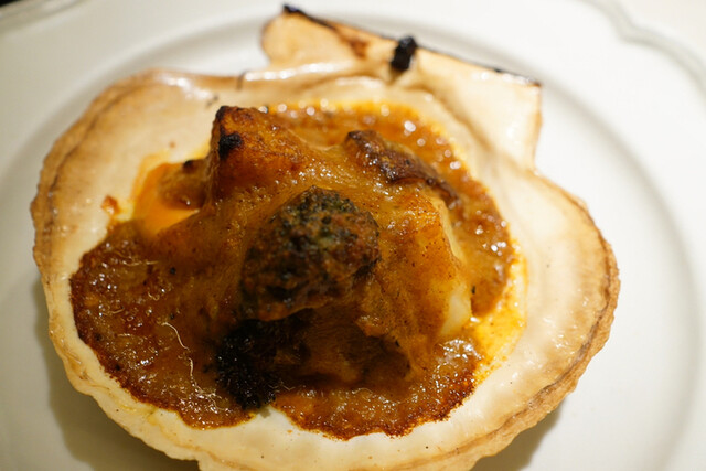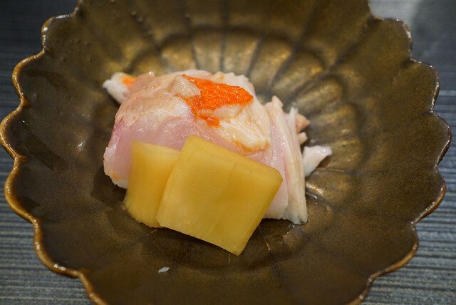 とにかく最初の一品目から感嘆。ごまとミルク、柚子の香りが素晴らしい。センスの良いシェフは香りに着目します。揚げ方もにい留さんで衝撃を受けたらしくさらに繊細な感じでした。これは素晴らしい。