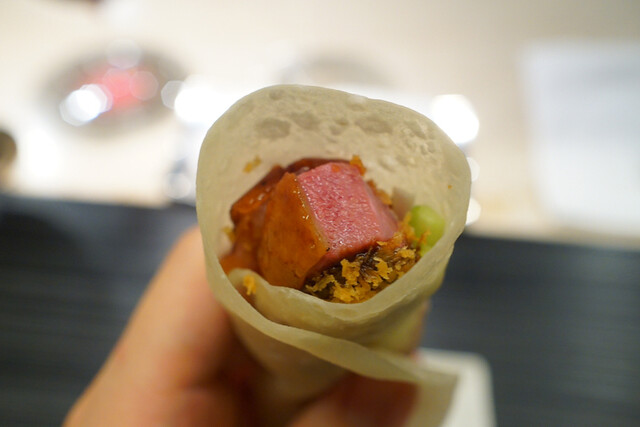 和牛と新生姜のクレープ巻き