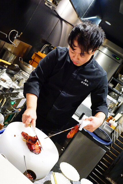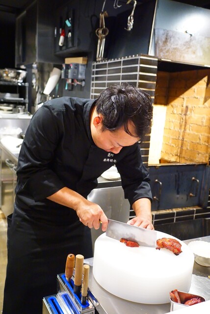 旨味が抜けないように頭付きのまま仕上がった北京ダックを目の前で捌きます。普通は皮だけ食べますが、廣澤さんは肉までジューシーに仕上げてくださって肉付きの厚切りで食べさせてくれます。出来立てのあつあつの北京ダックが1番好きです。一部で出てくる冷めた北京ダックとか論外…笑笑
