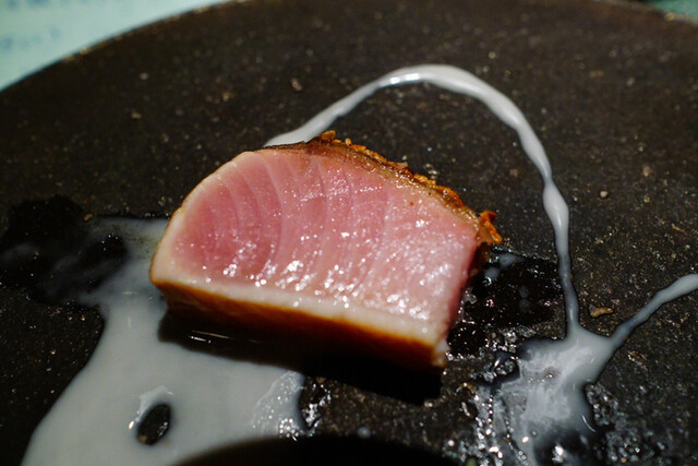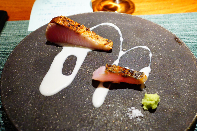 シェフは元々フレンチ出身でその影響かソースへのこだわりが素晴らしく、厳選された素材で作られた旨味の凝縮度、ソースの完成度は見事である。それでいて和の要素や甘み、旨味の強い有機野菜をふんだんに使い、コース全体が重たくならないように味のバランスを整えている。