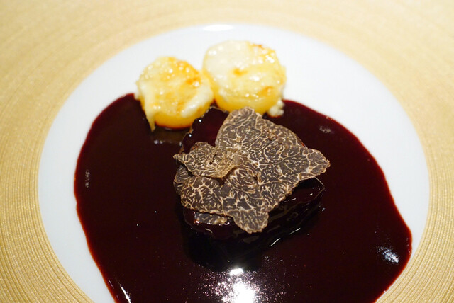 素材の良さを生かし、限界まで引き出す技はもちろん、しっかり美味しいと感じさせる攻めの塩加減が完璧。ポテチのようなわかりやすい美味しさを作り出そうとしたという説明には納得でした。脂と糖分と塩の三位一体で完成するおいしさ。軟水と硬水を使い分け、最高の状態で仕上げる素材とソース。フランスは硬水なので日本の軟水で同じ調理をするとあくが出てしまい、材料が煮崩れすると。硬水だとあくが固まり処理しやすく、材料も煮崩れしにくいらしい。そのため硬度1400のコントレックスと日本の軟水を使い分けているとか。神経締めの魚ととろける食感の最高級和牛の但馬玄。素材も調理も完璧だと美味しくないわけがないです。ペアリングのワインも粒揃い。スペシャルのハーフペアリングを頼みましたが、ハーフでも十分なボリュームです。