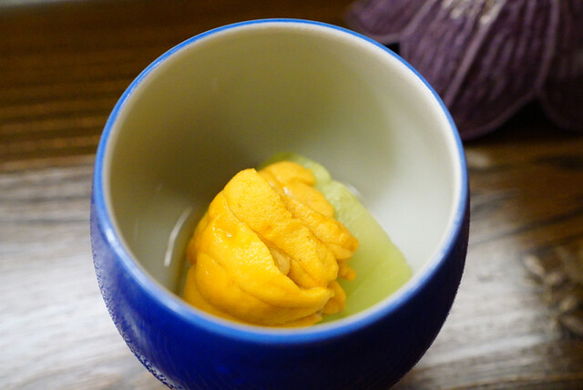 ナスと赤雲丹、氷見牛に鮎寿司と素晴らしい夏の料理でした。