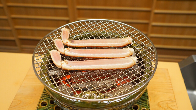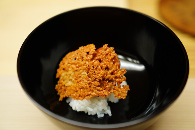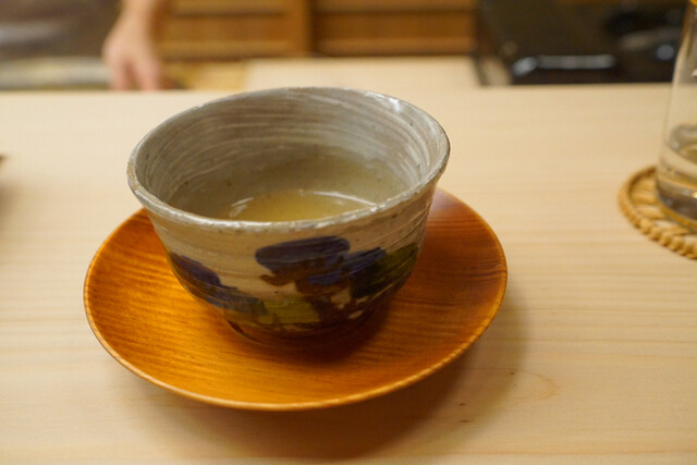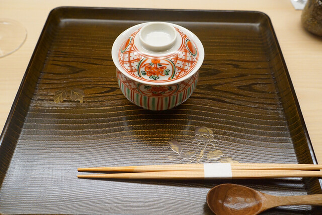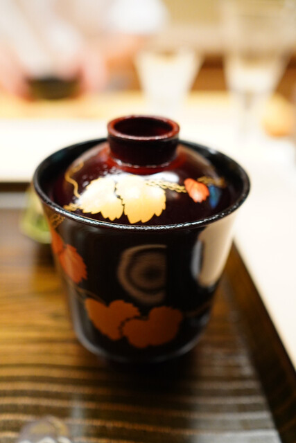 蟹が食べられるとは期待していなかっただけに蟹のお椀には感激。タイのすり身と混ぜてしんじょう?ではないけどもちもちと蟹の身の食感を活かしつつねり団子みたいに仕上げてて非常に美味しかったです。特注カツオ節の出汁にこれは贅沢ですね…まさに唯一無二の世界観です。