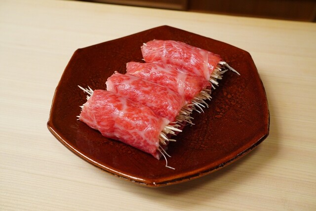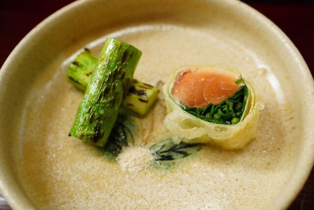 能登の素材を中心に素材の良さを極限まで追求する店。直接氷見まで仕入れに向かい、朝採れ、昼採れの鮮度の良い素材を仕入れ、それをベストな状態で提供する。食材の新たな可能性に目覚めさせてくれる唯一無二の体験ができる。