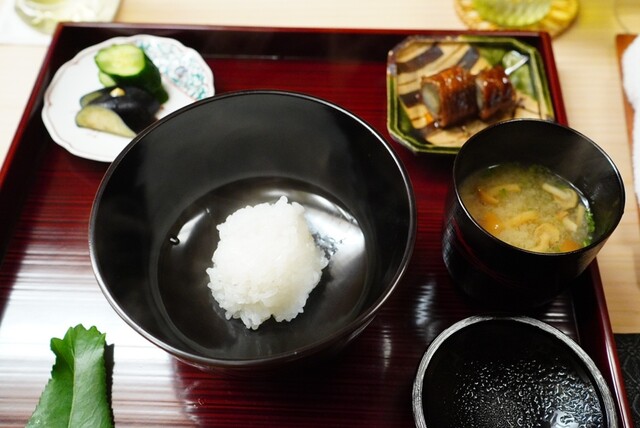 天然うなぎの焼き、牛肉の八幡焼き、カツオごはん、卵かけご飯、酢締めタイのお茶漬け、甘味、炒り番茶、抹茶と素晴らしいお料理でした。