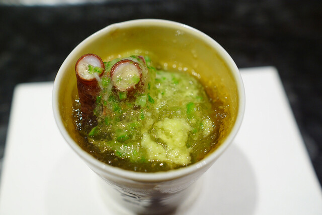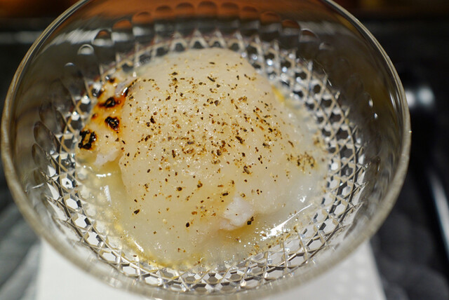 面白いのはひさ田とは一線を画す料理。こちらはつまみがメインで寿司がおまけ。コッペ蟹にバルサミコ酢を合わせるとか、ホタテに百合根のあんかけとか天才的発想の連発!これがちゃんとハマって美味しいのは言うまでもない!
