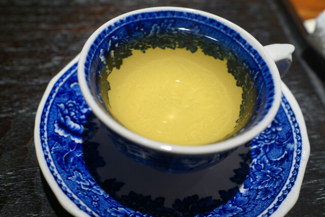 ①すっぽん、牛蒡、玉葱、羅臼昆布のスープ