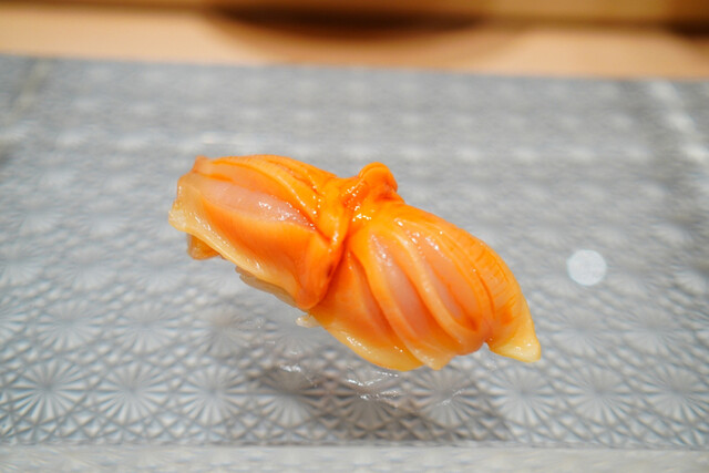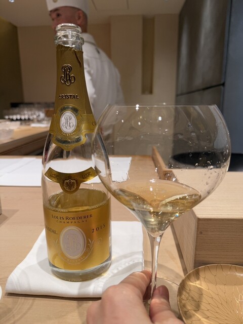 最初のクリスタルのマグナム97からして素晴らしい塾成香と炭酸で今がピークって感じ。冷えて出されますが時間と共にキャラメルのような感じになり単体でも素晴らしいが、2時間生き蒸しにしたあわびとその煮汁に合わせると最上のマリアージュを味わえる。まさか寿司でこのレベルのマリアージュを感じられるとは夢にも思いませんでした。