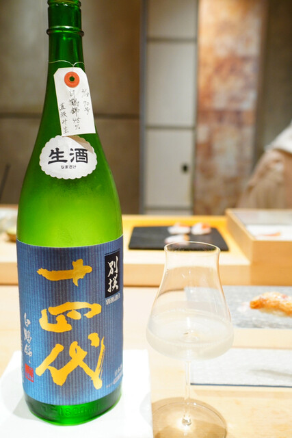 十四代 愛山50パー 直汲み生 (非売品) 素晴らしいクロムツの油を片栗が包み、それをさらに十四代が綺麗に〆てくれる。
