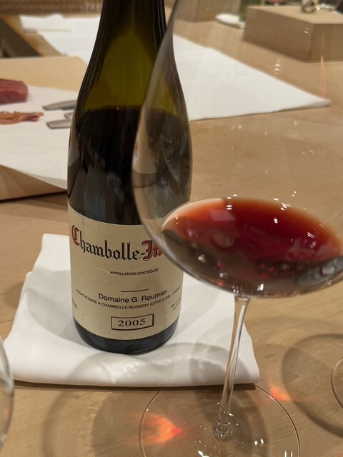次にカツオと揚げた鰹節をヴォギュエのシャボールミュジニーPC95に合わせる。なるほど、当たる的は一緒とはこのことですか。それぞれ完璧だけど的の10点に刺さってる矢尻を割いてまた10点を貫通してるかのような組み合わせ。ここの真価はペアリングを味合わないとわからないと思います。