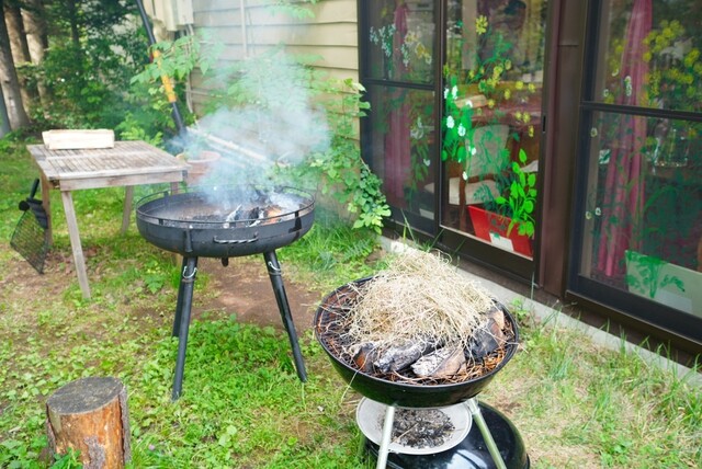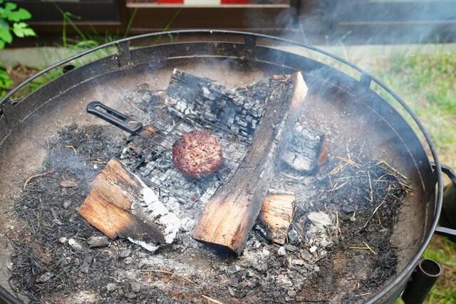 野生の狸と狐に経産牛の生肉を与え、食べ方を研究。動物は基本、肉をひきちぎる。この食材に関しては、一番美味しい食べ方と。粗挽きのハンバーグみたいにして薪焼きで。カカオパンに乗せて食べる。