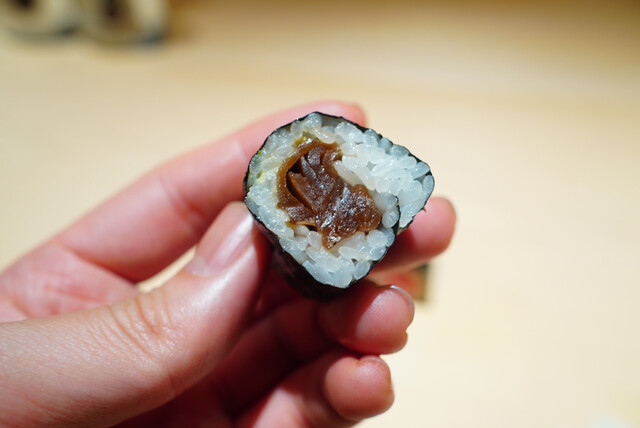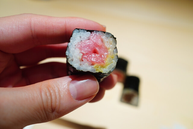 いよいよ、お寿司のスタート。まずはつまみからですが、相変わらずの絶品揃い。特に印象的だったのが、店主・工藤さんのマグロに関するお話。「空輸されているマグロより、そうでないマグロの方がストレスが少なくおいしい」とのこと。なるほど、それが味にも影響するのか…!少し海水温の変化で状態が弱めとのことでしたが、それでも冬のマグロらしい深みがあり、この冬一番の美味しさでした。