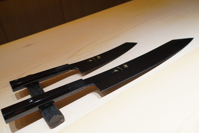 時間になるとメインカウンターへ移動。8席という限られた空間ながら、以前より広々とした設計で、とても快適に過ごせるのが嬉しいポイントです。北海道時代は寒空の下で待つこともありましたが、今回はそうした心配も不要。より洗練された空間に進化しているのを実感しました。