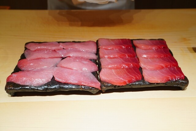 握りに移ると、シャリの変化にすぐ気づきました。以前よりやや水分が多く、粘り気を感じる仕上がり。かすごやさよりとは前の方が好きかなーって感じ。しかし、工藤さん曰く「3貫目まで食べてみて」とのこと。そのまま進めると、3貫目のさわらと合わせた瞬間、シャリの旨味が爆発的に広がる感覚…!どうやらシャリを”乳化”させるようなイメージで、マグロの脂と見事に調和するようにチューニングされているそう。実際、中トロ・大トロはこの冬食べた中でダントツの美味しさ。シャリとネタが一体となり、究極のバランスで仕上げられていました。