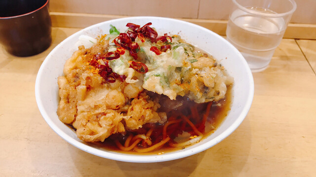 揚げ立てでは無くとも衣がカリっとしているのが嬉しい。しかも、麺が無くなってもゲソが丼の底に残っているほど。