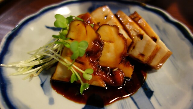 地鶏はモモと肝が入っていて蕗との合わせ加減が素敵。