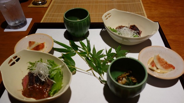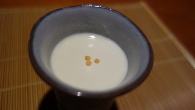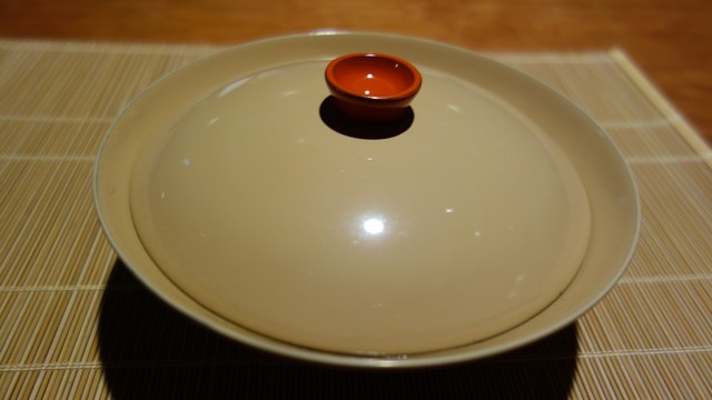 鱧の下に卵豆腐が敷いてあるので一緒に口に入れたのですがこれがまぁ卵豆腐が味付けになっているんですね。鱧のある種淡白な味にほんとうにちょうどいい味付け。なるほど鱧は淡白だからって味付けしすぎてはいけないんだな。