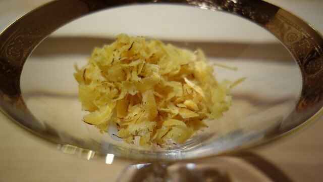 この唐墨がチーズのような濃厚さと爽やかな塩味で、下に埋まっているトラフグのプリップリの食感と相俟って実に美味でこれもまた箸が止まらない。