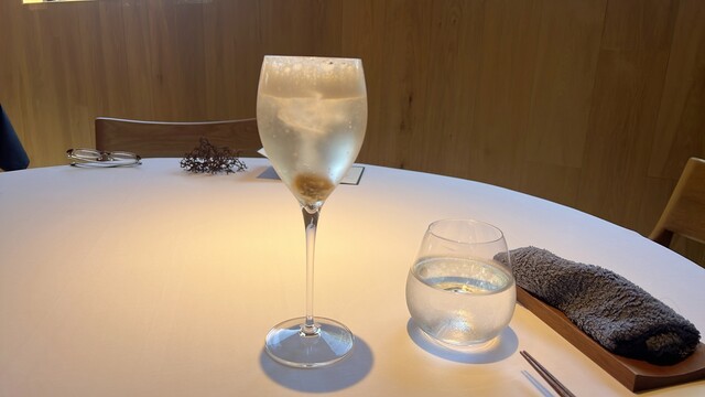 ヒルトン長崎での朝食をドリンクだけでグッと我慢したのはお昼にここに来るから。一路、島原半島へ向かい、国見にある「Villa del nido」さん。駐車場は3台くらい駐められるかな。予約も3組しかとっておられないようでしたので問題ないですね。店内にはもう一組ぐらいテーブル置けそうでしたが、綺麗に磨き上げられたグラスが。シェフと奥様のお二人でのオペレーションなので3組がベストという判断なのだろうと推察します。テーブルセッティングも非常に美しく清潔感溢れます。メニューはイマジネーションを膨らませるタイプです。ペアリングもよさげです。ハンドルキーパーなので自家製サイダーを。梅のサイダーだったかな。梅からシュワシュワしてます。◆煮浸し車海老をどないかしたんをモロヘイヤで包んで煮浸し。うわー凄いなんだこれ!(語彙力皆無)車海老のプリプリ具合にモロヘイヤと相まって抜群の食感、味わい。◆湧水パン島原の湧き水で手作りのパン。これマジ美味い(片言)。イタリアン、フレンチは美味しいところはやはりパンも抜群に美味しいですね。◆生魚ハナオクラをどうこうしたやつの下にキジハタ。どうやったら思いつくのかこういうの。ただの生魚ではなくハナオクラによって昇華している。◆モリ付き海中神経締めスジアラのフリット。見た目はシンプルですが口に入れるとものすごく複雑な味。何層にも幾重にも味がやってくる。サックリとした揚げ具合もあり聴覚でも美味しい。パン。今度は島原のアオサが練りこまれているとか。あぁ美味い。あと何回「美味い」って言うでしょうか私。◆種採りじゃがいもジャガイモのポタージュ的な。周囲にはコウカイという貝などと野菜が。かき混ぜて一緒に食べるとなんだか口福。◆素麺具は多比良ガネ・タマネギ。島原の素麺は日本一細いとの説明を受けましたがそれも頷ける細さ。細いので多比良ガネというワタリガニの味が素晴らしく舌にまつわりつきめくるめくディープキス。もう脳が蕩けるかと思いましたよ。◆米香餅米の雑炊仕立てよくわかんないので具を掬ってみました。ここにもコウカイ、いたかな?◆平飼い親鶏これも親鶏の旨味が凝縮されたスープが絡みつきまくったパスタ。スゴイ。クリームパスタなんだけど、クリームよりも鶏が強く、ブイヨン風味のような。◆肉黒毛和牛のハラミ・アオナス。ハハハ、もう笑うしかない。これはもう芸術です。◆デザートなんだったかのグラニテ。なんかすごくカカオカカオしててうれしい楽しい大好き。◆寺門さん焙煎珈琲珈琲までしっかり地のもの。小菓子も長崎だけにカステラっぽいものとかいろいろすべて実に美味しかったです。3月に「ca'enne」さんにお伺いしてからイタリアン、フレンチ、ひいてはローカルガストロノミーなお店に興味を持ち、島原に素晴らしいお店があると聞いて今回訪問させていただいたのですが、「ca'enne」の臼井シェフもこの夏こちらに行ってらっしゃったようですねいやもうこちらの「Villa del nido」さん、近くに来たら、ではなくこちらを目的に島原を訪れるべきお店です。