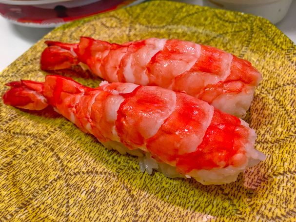 最後に一貫食べることにしました。600円を支払ってこの幸せな終わりを迎えようと思いました。だから、最後の一回通り過ぎる時に、私はそれを止めました。しかし、思いがけず、大蝦を噛もうとした瞬間、カウンターのマスターが突然やってきて、この一貫は長すぎると言って、新しく作り直してくれると言いました。それから、彼が私の前の大蝦の寿司を取り上げ、しばらくしてから新しい一皿を持ってきました。