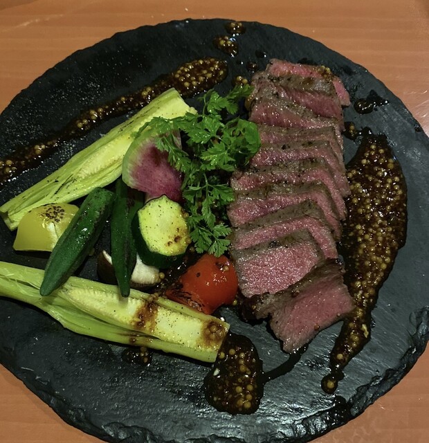 お店に入ってメニューをもらって見てみると、ミスジステーキ、ジビエ鹿肉、肉盛り合わせなどが充実。