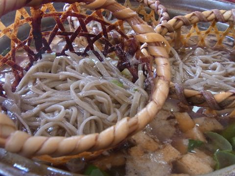当然のことながら「とうじそば」を注文しました。特徴はザルにそばを入れでダシ汁にしゃぶしゃぶする