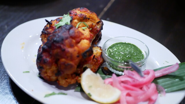 前菜にサラダ2種とカリフラワーのタンドール焼き。
